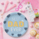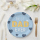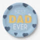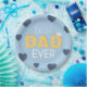 Feliz Día del Padre diseño lindo, mejor papá jamás texto amarillo con corona, nubes blancas y corazones azules en el cielo, linda tarjeta de saludo 3d personalizado