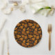 Hermosas placas de papel con un patrón impecable de hojas de otoño naranja y marrón sobre un fondo oscuro.