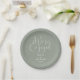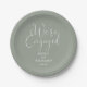 Este plato de papel de la fiesta de compromiso de guiones elegantes y verdes de sabio se puede personalizar con todos sus nombres y fecha especial. Diseñado por Thisisnotme©