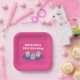 Papel rosa personalizado de la fiesta de cumpleaños de un niño divertido Diseño colorido y bonito con nombre de niño. Dulces trajes de comida para celebraciones con niños. Opciones cuadradas o redondeadas.