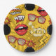 Añade tu propio nombre u otro texto al personalizar este divertido patrón de placa de papel retro de bombas, labios, burbujas de habla y gafas de sol en brillantes tonos de rojo y oro. El texto que ya está en el patrón dice 'WTF' y 'Boom'. Busque ID553 para ver otros productos con este diseño.