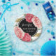 Las placas conocidas adaptables del fiesta de fiesta de bienvenida al bebé en blanco y negro con las rayas del oro y las flores rosadas de la acuarela, observan por favor el oro son efecto fotográfico solamente.