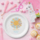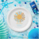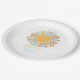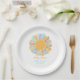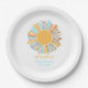 placas de papel personalizado. Diseñado con un sol retro boho en un amarillo naranja con una luz solar azul claro. Visite nuestro Tema Bohemian Sunshine para encontrar artículos de papelería y artículos de fiesta. servilletas, invitaciones, tarjetas de agradecimiento, ducha de bebé .juegos y más