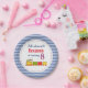 Personalizado de juguete con las plantillas anteriores para agregar su mensaje, el nombre y la edad del niño. Detrás hay un fondo de un patrón de rayas azul claro y oscuro.