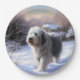 Plato De Papel El viejo pastor inglés deja que nieva a los Navida