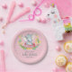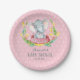 Plato De Papel Elefante Chica Baby Shower rosa y gris