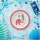 Añada esta adorable placa personalizada de fiesta de cumpleaños al fiesta de su hijo. El diseño presenta una imagen de un elefante rosa lindo que sostiene globos de colores. El texto personalizado le permite personalizar para cualquier niño de edad.