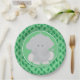 Esta placa del fiesta ofrece un fondo verde con un modelo de repetición de las hojas de la selva. Un elefante gris del clipart lindo del bebé se sienta en el centro de la placa.