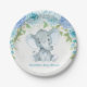 Plato De Papel Elefante Floral Azul Niño Bebé Ducha Fiesta Placa