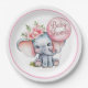 Plato De Papel Elefante lindo con Chica de globos rosados Baby Sh