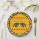 Estos platos de papel ofrecen una visión moderna de las ceremonias y recepciones tradicionales de los bodas indios con su atrevida paleta de colores de amarillo dorado, rojo y azul real. Las placas están acentuadas por un motivo geométrico y cuentan con ilustraciones de elefantes en azul real y están listos para ser personalizados con tu texto.