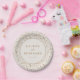 These elegant wedding plates feature a vintage-inspired design with a delicate floral pattern in soft beige, cream, and light brown tones. The central circular element is outlined in gold, complementing the muted gold serif font that highlights the customizable names and date. Perfect for adding a touch of rustic charm to your wedding celebration, these plates create a warm and sophisticated atmosphere. The subtle watercolor-style art technique enhances the romantic and timeless feel, making them ideal for formal occasions.