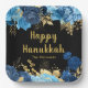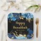 Plato De Papel Elegant Blue and Gold Flowers Hanukkah Party