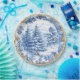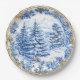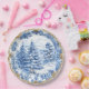 This elegant plate design features a decorative faux gold border design with a blue toile winter forest scene.