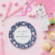 This elegant wedding plate design features a beautiful floral motif with delicate pink protea flowers and lush green foliage set against a deep blue background, creating a sophisticated and romantic atmosphere. The clean, classic typography adds a timeless touch to the overall aesthetic. Perfect for a spring or summer celebration, this design exudes charm and grace, making it ideal for adding a personal and stylish touch to your special day.