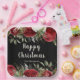 Pretty Christmas party paper plate with red flowers and green foliage. The words can be changed to suit your own details or requirements. Would be perfect for a Christmas dinner party or holiday party.