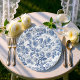 Featuring a timeless blue toile botanical pattern inspired by classic European textiles, these plates bring vintage charm and elegance to your event décor. The delicate floral design in dusty blue on a soft white background makes them perfect for romantic garden weddings, bridal showers, engagement parties, and elegant receptions.