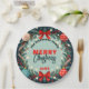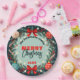 This customizable Christmas paper plate is the festive centerpiece your holiday table needs. The design is a lush, deep-green evergreen wreath beautifully detailed with classic red berries and soft, snow-like polka dots.