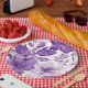 This design features a repeating pattern of flowers and leaves in various shades of purple on a white background. The vibrant color scheme and aesthetic arrangement of the floral elements make this design ideal for a variety of applications, from textiles to stationery, adding a sleek, contemporary touch to any product.