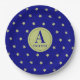 Plato De Papel Elegant Gold & Blue Star Pattern Monogram