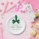 Celebrate in style with these elegant baby shower paper plates featuring a green watercolor ribbon and bow at the top of the design. “Baby Shower” appears in refined green calligraphy, with customizable text below for the mother-to-be’s name and shower date. Perfect for Christmas or winter baby showers, these plates add a festive yet timeless touch to your table décor.
