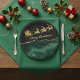 Plato De Papel Elegant Green Gold Santa Sleigh Merry Christmas
