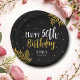 Elegant Happy 50th Birthday Gold Foliage Party Paper Plates. Celebrate a milestone in style with this personalized plates. Featuring a sophisticated black background with luxurious gold foliage, this design adds a touch of class. These plates are perfect for making the guest of honor feel extra special. Make turning 50 unforgettable with this timeless and chic design!