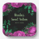 Pretty birthday paper plate with magenta hot pink purple flowers and green foliage. The words can be changed to suit your own details or requirements. Would be perfect for a sweet sixteen birthday party.