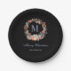 Plato De Papel Elegant Monogram Wreath Chic Black Christmas Party
