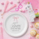 Celebrate the upcoming arrival of a sweet baby girl with this timeless and elegant baby shower paper plates. Featuring a soft pink satin-style bow and graceful script typography, this design blends classic charm with modern minimalism.