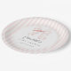 Elegant baby shower paper plates that features light pink & white stripes and a simple bow design