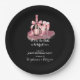 Celebrate a milestone in style with this elegant joint birthday party plate, perfect for both family and formal gatherings. Featuring a black background and a refined graphic of a pink champagne bottle tied with a bow alongside two glasses, this design radiates sophistication and warmth. The heartfelt script message “It's a double celebration” sets the tone for an evening full of appreciation and good company. All party details are neatly presented in a classic serif font, making them easy to read and customize.