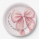 Plato De Papel Elegant Pink Pearl Bow Baby Shower