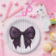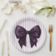 Make your baby shower truly memorable with these elegant paper plates. A stunning, realistic purple bow is the centerpiece, set against a backdrop of delicate purple and white vertical stripes. These plates are ideal for a sophisticated baby party, providing a beautiful and practical way to serve your guests. The combination of the deep purple bow and subtle stripes creates a charming and festive atmosphere.