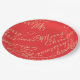Plato De Papel Elegant Script Merry Christmas Pattern/ Red & Gold