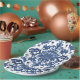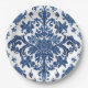 Plato De Papel Elegant Victorian Damask Flower Pattern Navy Blue