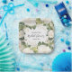 Bridal shower square paper plates feature white roses, green and gold leaves with your details in chic lettering. MATCHING items in our collection.