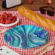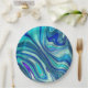 Añada un toque de Nueva Zelanda a los fiestas con estos elegantes platos de papel, que cuentan con elegantes y aleatorios remolinos iridiscentes, azules cerules y morados inspirados en conchas de paua (abulón arco iris). Diseño © W.H. Sim. Ver más en zazzle.com/expressionsoccasions