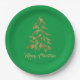 Plato De Papel Elegante Árbol de Oro Verde Feliz Navidad
