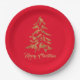 Plato De Papel Elegante Árbol Rojo Feliz Navidad