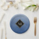 Plato De Papel Elegante Azul Cepillado Con Monograma De Oro Simpl