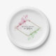 Este diseño presenta elegantes flores de color rosa y verde acuático. Los bonitos colores florales rosa y verde complementan el marco de los diamantes dorados y el texto negro. Alrededor del texto se ha dispuesto un elegante diseño de acuarela de flores. El uso de tipografía elegante para el texto del texto complementa el diseño. Este diseño es ideal para cualquier tema boda. El diseño de platos perfecto para todas las estaciones. También hay disponibles invitaciones de boda coincidentes y otros artículos de papelería.