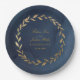 Plato De Papel Elegante Boda de guirnaldas de la marina y el oro