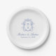 Plato De Papel Elegante Boda del Monograma Chino Azul Escudo