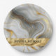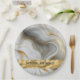 Placas de papel boda con un diseño de imitación de oro, blanco y gris de mármol.