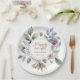 Presentamos nuestras minimalistas y modernas Placas de papel boda, con flores de bonito en hojas violetas y verdes y más, con un elegante fondo, creando un aspecto limpio y elegante para su día especial.
