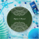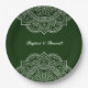 Un hermoso plato de papel personalizado de color verde esmeralda y blanco con un sari mandala ornamental de inspiración india exótica con un diseño floral. Este elegante y hermoso plato de papel de estilo indio moderno es perfecto para un boda, fiesta de compromiso, celebración de aniversario, cena de ensayo, ducha de novia o duchas de parejas con un tema étnico asiático o marroquí o árabe. Se puede personalizar con el nombre o las iniciales del novio y la novia. Excelentes platos de papel para un fiesta con temática diwali. verde invierno, verde esmeralda, verde oscuro parte de la elegante colección hindú del verde esmeralda verde verde esmeralda. https://www.zazzle.com/collections/elegant_simple_emerald_green_paisley_indian_hindu-119082435382548323?rf=238642071267668202