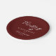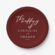 Este sólido plato de papel de boda burdeos presenta un guión blanco clásico para que una novia y un novio se casen en un lugar formal de la noche. Abran el romance con este rico y audaz color. decoración de tipografía minimalista y romántica para una pareja moderna.