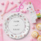Este plato de papel boda presenta hojas de color verde agua pintadas y lavanda con caligrafía moderna. Para una personalización más avanzada de este diseño, haga clic en el enlace "Personalizar más adelante".