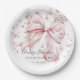 Plato De Papel Elegante Bow Rosa y Perlas Coquette Quinceañera